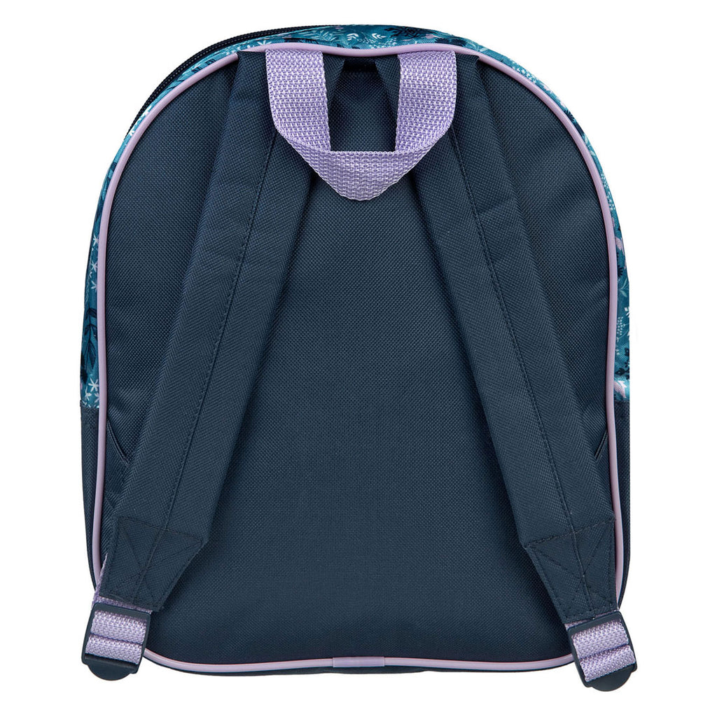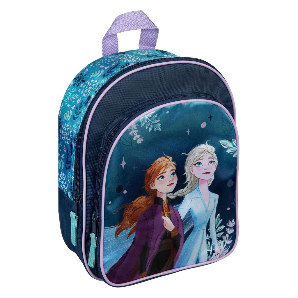 Super leuke en handige rugzak van de Frozen met een groot vak en een voorvak met afbeelding van Anna en Elsa. Zo kan je alles gemakkelijk in de rugzak stoppen in aparte vakken en veilig afsluiten met de ritsen. De rugzak is donkerblauw. Met verstelbare schouderbanden en ophanglus. Afmeting: 30 bij 24 bij 10 centimeter. Materiaal: polyester. Leeftijd: vanaf 3 jaar.