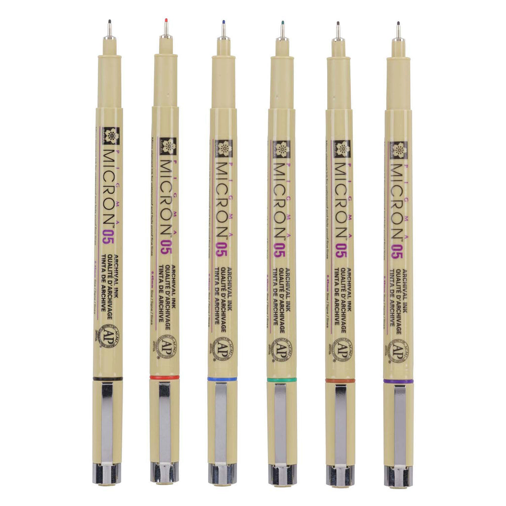 Set van 6 stuks Pigma Micron 05 0,45 mm fineliners.