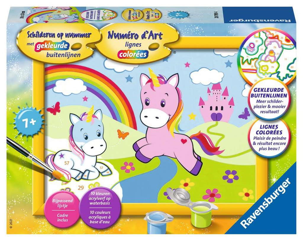 Schilderen op nummer van Ravensburger - iedereen kan schilderen! Dankzij de gekleurde buitenlijnen kunnen kinderen de afbeelding van de Eenhoornwereld en de benodigde kleuren sneller herkennen. Zo is het kinderlijk eenvoudig de kunstenaar in jezelf wakker te maken!