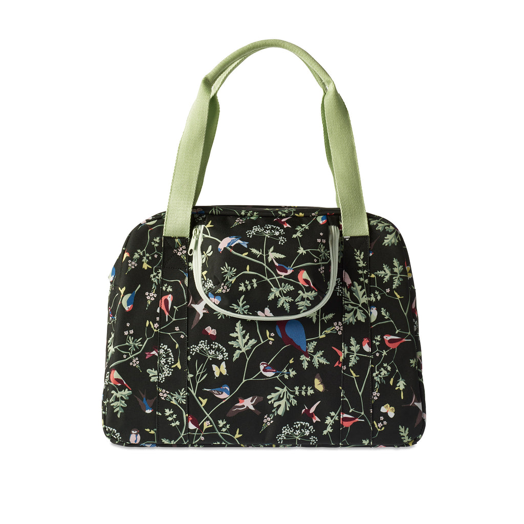 De Basil Wanderlust Carry All Bag is een zwarte fietshandtas met kleurrijke vogelprint. Deze vrolijke fietstas is ideaal voor het verkennen van de wereld op de fiets. Of je nu een fietstrip maakt met vrienden of een dagje gaat picknicken in het park, deze tas maakt je fietsrit leuker en praktischer. De tas is gemaakt van waterafstotend materiaal, waardoor de inhoud droog blijft, zelfs tijdens een regenbui. Het heeft een synthetische, stevige binnenvoering en hengsels, zodat je de tas over je schouder of in de hand kunt dragen. Met het Hook-On System kun je de fietshandtas eenvoudig aan diverse bagagedragers bevestigen, inclusief e-bikes. De reflectiedetails zorgen ervoor dat je beter zichtbaar bent in het donker. De tas heeft een inhoud van 18 liter met een ruime vak aan de binnenkant, waardoor er voldoende ruimte is voor al je dagelijkse benodigdheden. Deze Wanderlust fietshandtas maakt deel uit van de Basil Wanderlust collectie. Specificaties: - Eenvoudig aan diverse bagagedragers (ook e-bike) te bevestigen met het Hook-On System - Gemaakt van waterafstotend materiaal - Reflectiedetails voor betere zichtbaarheid in het donker