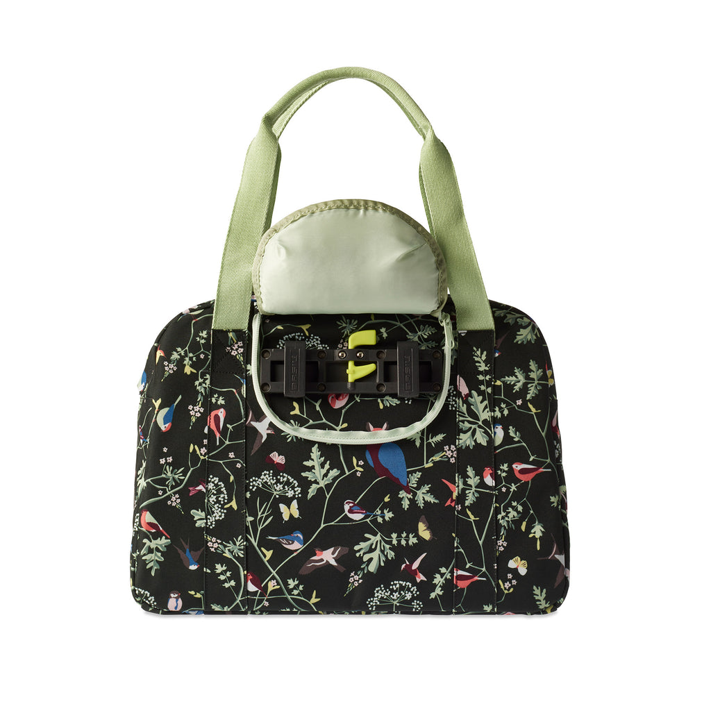 De Basil Wanderlust Carry All Bag is een zwarte fietshandtas met kleurrijke vogelprint. Deze vrolijke fietstas is ideaal voor het verkennen van de wereld op de fiets. Of je nu een fietstrip maakt met vrienden of een dagje gaat picknicken in het park, deze tas maakt je fietsrit leuker en praktischer. De tas is gemaakt van waterafstotend materiaal, waardoor de inhoud droog blijft, zelfs tijdens een regenbui. Het heeft een synthetische, stevige binnenvoering en hengsels, zodat je de tas over je schouder of in de hand kunt dragen. Met het Hook-On System kun je de fietshandtas eenvoudig aan diverse bagagedragers bevestigen, inclusief e-bikes. De reflectiedetails zorgen ervoor dat je beter zichtbaar bent in het donker. De tas heeft een inhoud van 18 liter met een ruime vak aan de binnenkant, waardoor er voldoende ruimte is voor al je dagelijkse benodigdheden. Deze Wanderlust fietshandtas maakt deel uit van de Basil Wanderlust collectie. Specificaties: - Eenvoudig aan diverse bagagedragers (ook e-bike) te bevestigen met het Hook-On System - Gemaakt van waterafstotend materiaal - Reflectiedetails voor betere zichtbaarheid in het donker