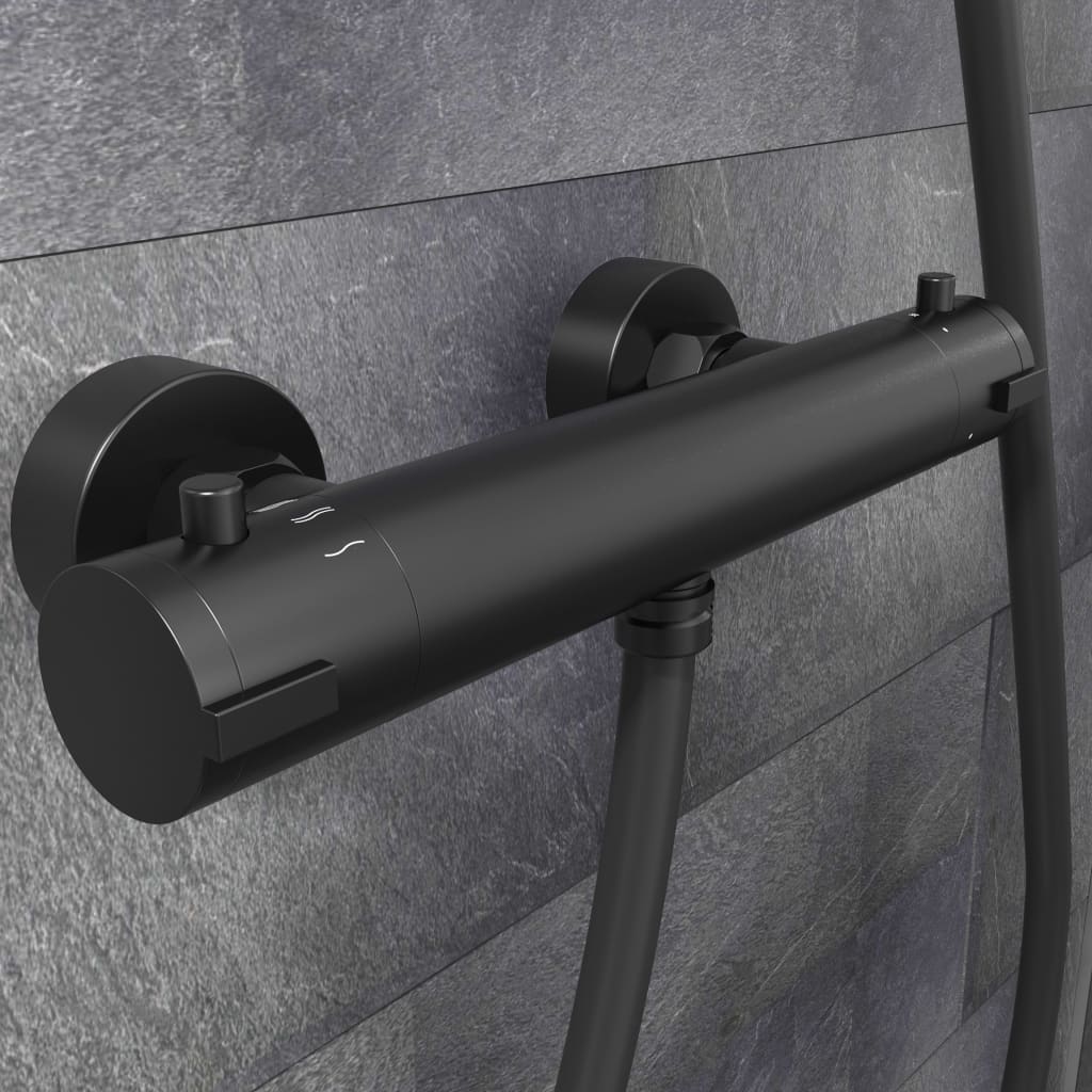 Deze douchekraan met een matzwarte afwerking van SCHÜTTE is zeer duurzaam. Met de thermostaatkraan stel je de watertemperatuur in op een aangename warmte. De temperatuurschaal bevat kinderbeveiliging op 38 °C voor extra veiligheid voor je kleintjes. Deze mengkraan is kosten- en waterbesparend omdat hij tot 50% water kan besparen.