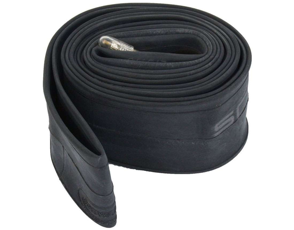 Schwalbe binnenband Standaard 28x1.75 Frans - SV19/50-584, 60-584, 62-584, 40-622, 47-622, 50-622, 57-622, 62-622, 40-635. De Schwalbe binnenbanden zijn betrouwbaar. Fietsdetaillisten waarderen hem om zijn hoge betrouwbaarheid. Elke band wordt in de fabriek opgepompt en zo 24 uur op luchtdichtheid getest. De band houdt de luchtdruk langer vast. In de productie vereist Schwalbe een zeer hoog butyldeel en een zeer hoge reinheid van het materiaal. Zo houdt de Schwalbe binnenband de luchtdruk langer vast dan andere binnenbanden. Het is een groepen-binnenbandsysteem: Een Schwalbe binnenband is extreem elastisch en past op meerdere bandafmetingen. Hierdoor worden ze groepen binnenbanden genoemd. Zo verleden bijvoorbeeld de binnenband met nummer 19A voor bandafmeting van 27,5 inch tot 29 Inch en voor de breedte van 40 tot 62mm. Als laatste is de band 100% volledig recyclebaar. Standaarduitvoering: Hoge betrouwbaarheid, al vele jaren getest.
