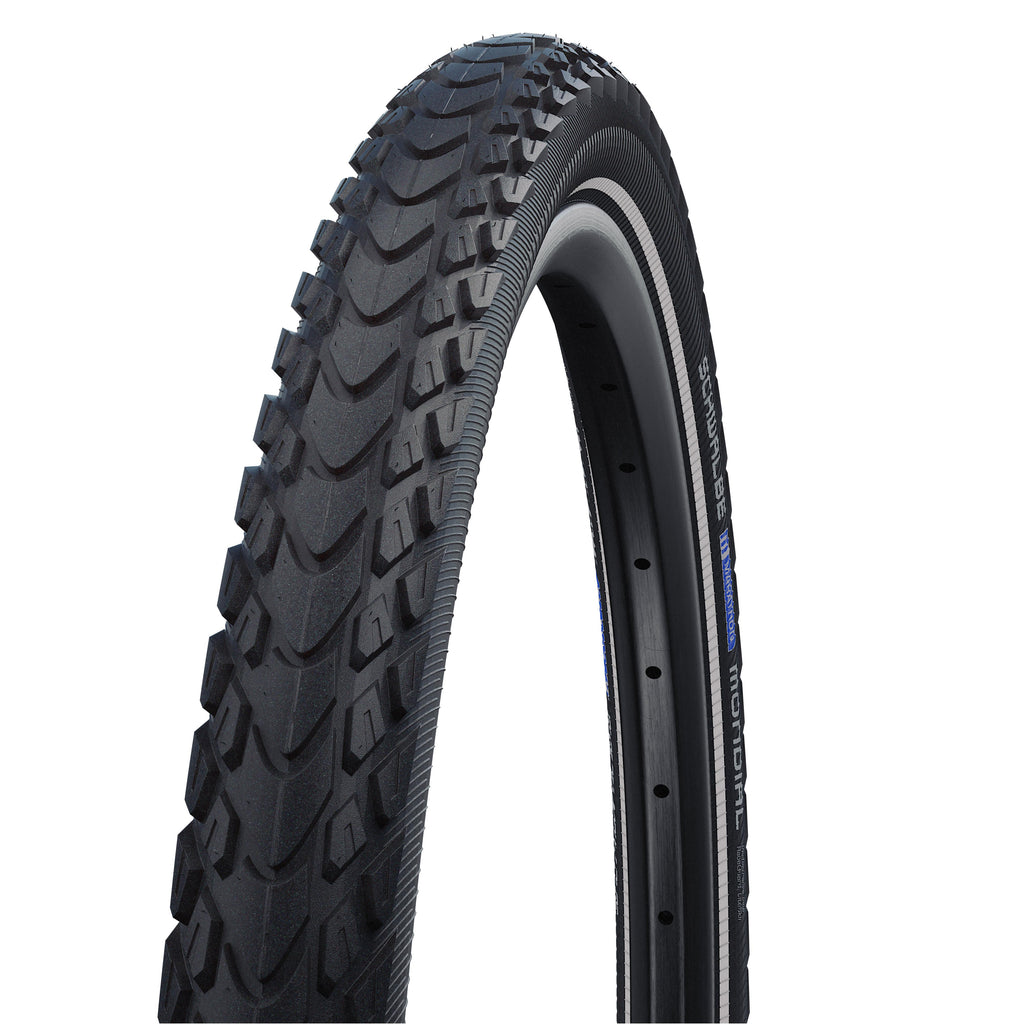Schwalbe btb Marathon Mondial Performance RaceGuard 28 x 1,75 zwart refl. De ultieme band voor op reis. Gemaakt voor wegen en paden op alle continenten. Het profiel spiegelt zich bewust aan het voorbeeld van de gekwalificeerde Marathon XR. Constructie en compounding zijn natuurlijk uit de actuele Schwalbe Evo technologie geproduceerd.