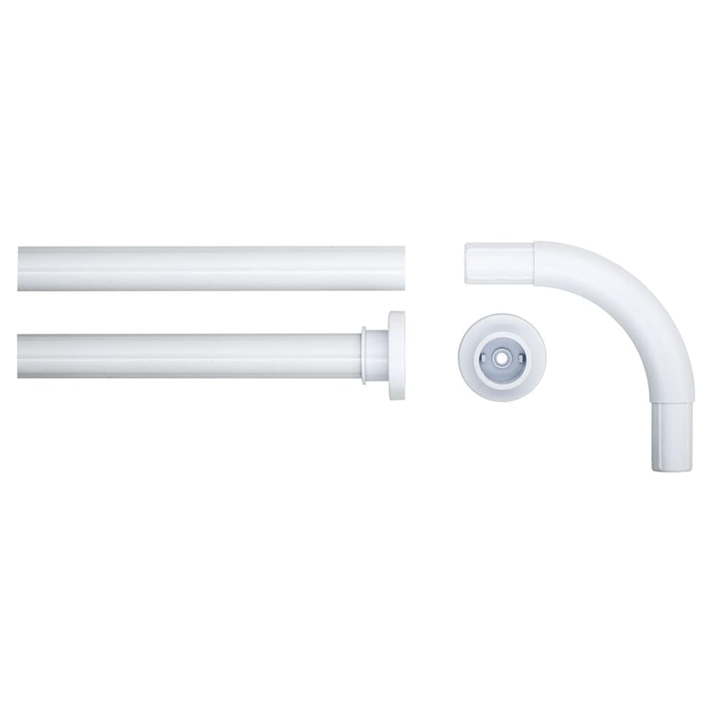 Bovendien wordt deze handige douchegordijnrail, met een lengte van 90 cm bij 90 cm, geleverd met alle benodigde accessoires om een douchegordijn in een L-vormige samenstelling op te hangen.