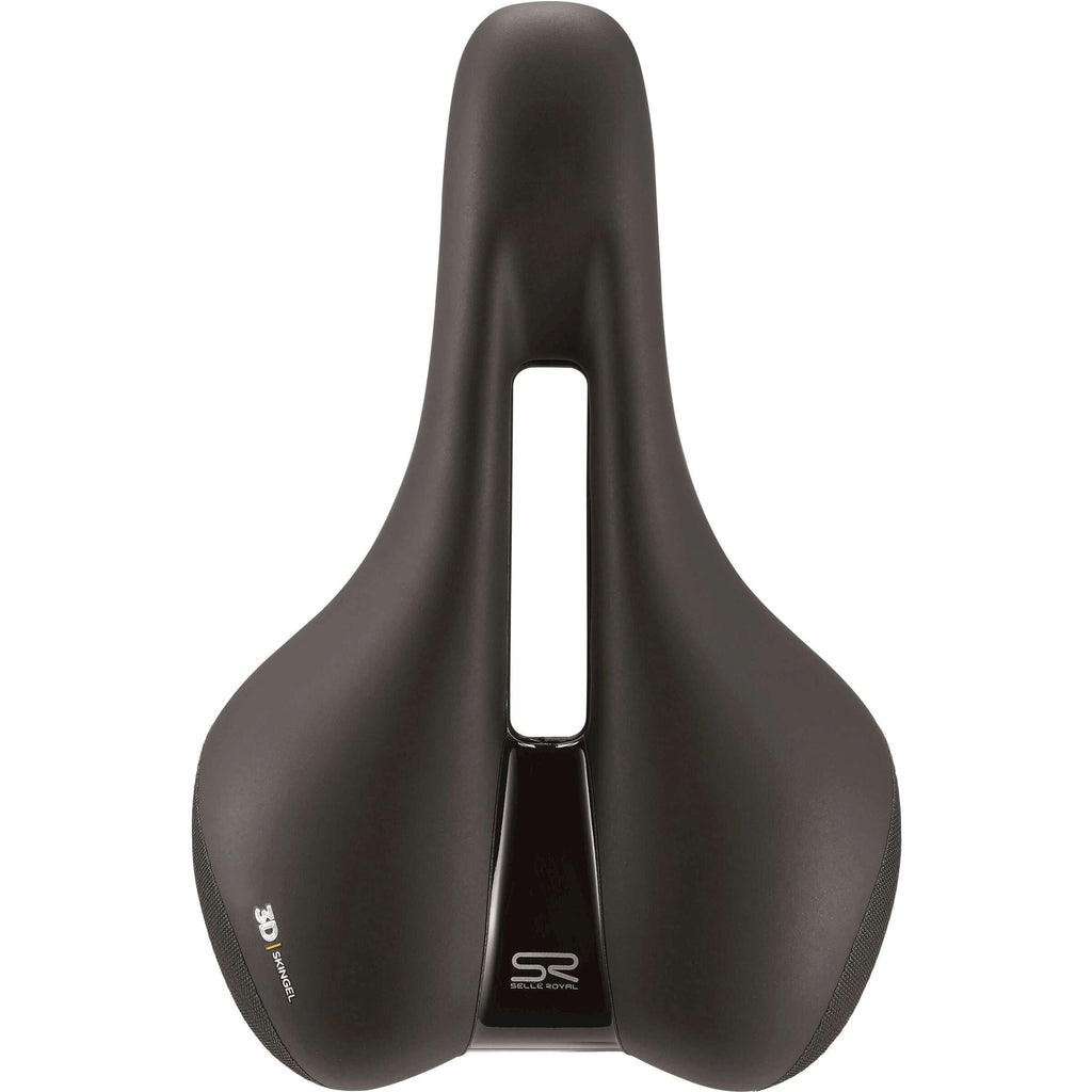 De Ellipse is de ideale fietszadel voor stadsritjes van elke lengte dankzij de gepatenteerde Royalgel™ zadelvulling, aangevuld met een centrale anatomische afsluiting die de druk verlicht op gevoelige delen rond het perineum. Voor extra comfort vangen schokdempende elastomeren de hobbels op op ruwe wegen op. De Ellipse is voorzien van een dubbele dekking aan de indirecte als een extra buffer tegen schuren en vormt de ideale metgezel op al je stadse avonturen. Selle Royal zadel Ellipse Moderate zwart