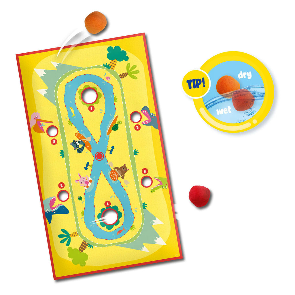 Dit grote speeldoek kun jij samen met twee of vier kinderen spelen. Probeer zo goed mogelijk alle bal(len) op het doek te houden en volg de routes! Zorg ervoor dat de twee waterspetters niet door de gaten heen glijden. Gaat jij het samen alles in balans houden?