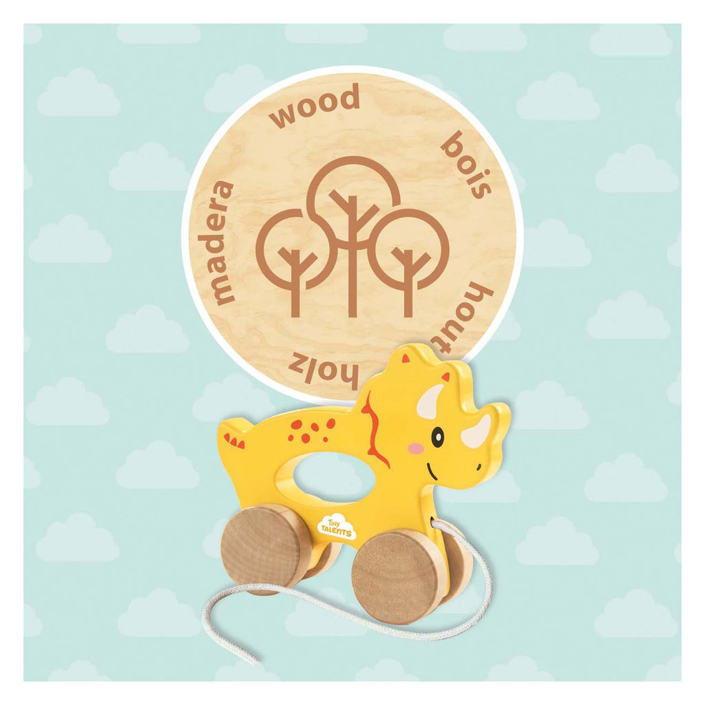 Laat je kleintje op avontuur gaan met de Trekdier 2 in 1 houten Triceratops! Deze houten triceratops kan achter je soort aan rijden door hem mee te nemen aan het koord. Daarnaast kan hij worden gebruikt als een duwauto dankzij de ergonomische handgreep die in het ontwerp verwerkt is. Dit speelgoed stimuleert de motorische vaardigheden en het fantasiespel. Perfect voor kinderen die van dinosaurussen houden en actief spelen!