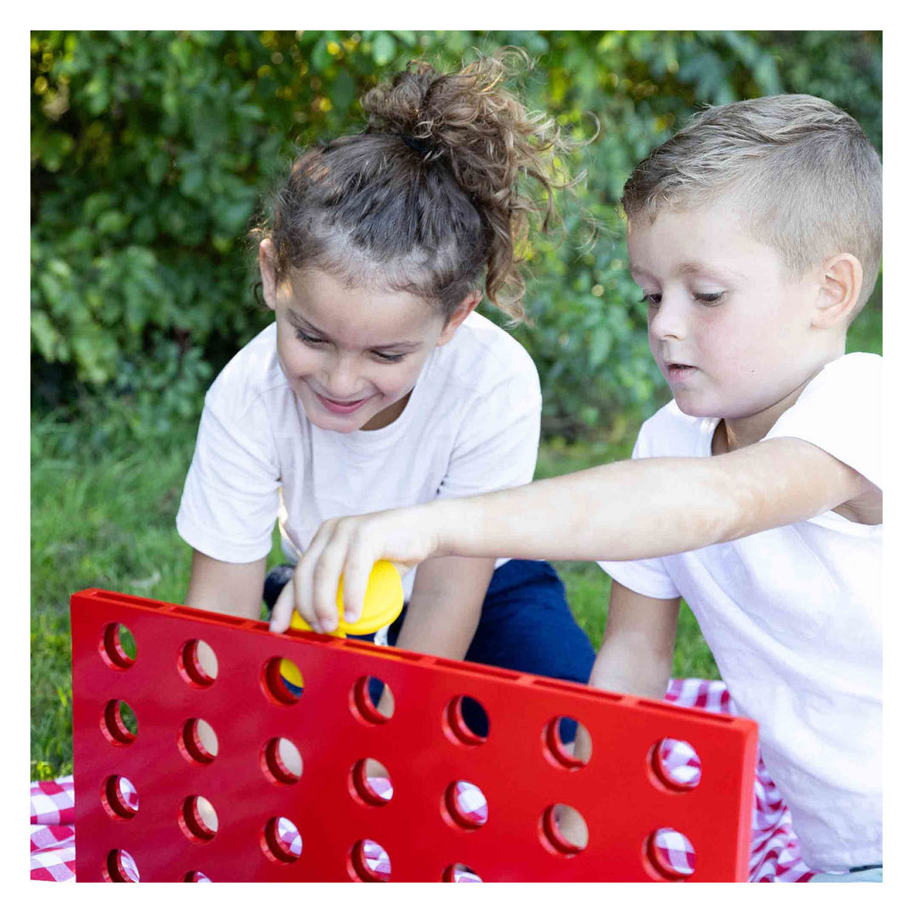 De klassieker in extra grote uitvoering, vier op rij XXL! Dit 3-delige houten frame en 42 speelfiches zorgen voor een middag vol strategie en plezier voor het hele gezin. Vier op rij XXL is geschikt voor alle leeftijden en kan overal gespeeld worden. Kenmerken • XXL uitvoering van het klassieke spel • Gemaakt van hout • Stimuleert strategisch denken • Gemaakt van stevige materialen voor buitengebruik • Speelplezier voor jong en oud Geschikt vanaf 5 jaar.
