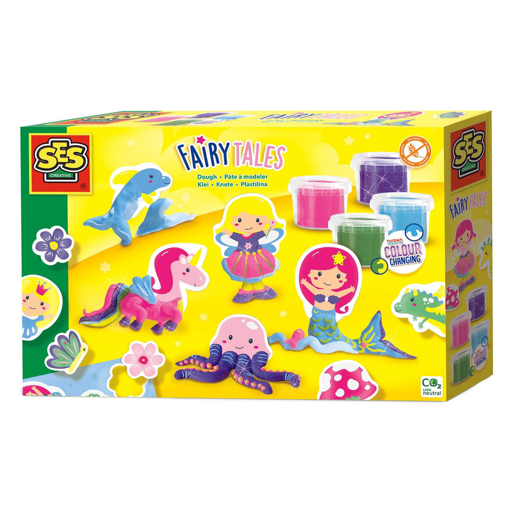 Ben jij ook zo fan van sprookjes? Deze set bevat twee potten speciale kleurveranderende klei. Door de warmte van je handen verandert ze van kleur! Ook zit er glitter- en neon klei bij. Deze vier bijzondere kleuren en de vrolijke insteekfiguren brengen jouw sprookjes nog meer tot leven!