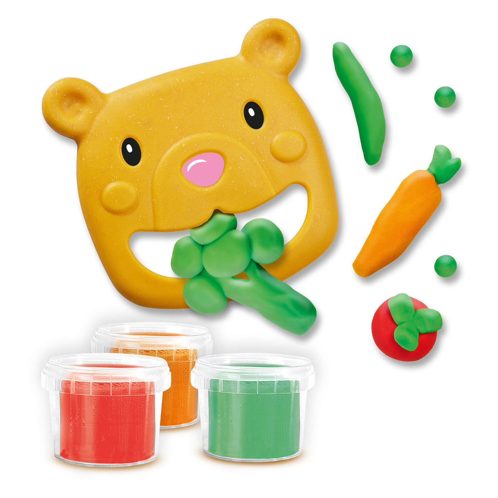 Met deze set van SES Creative kunnen kinderen vanaf 1 jaar het bier voeren met allerlei lekkers. De set bevat groene, oranje en rode klei, waarmee ze groente en fruit kunnen maken. Laat het bier zien hoe lekker alles is!