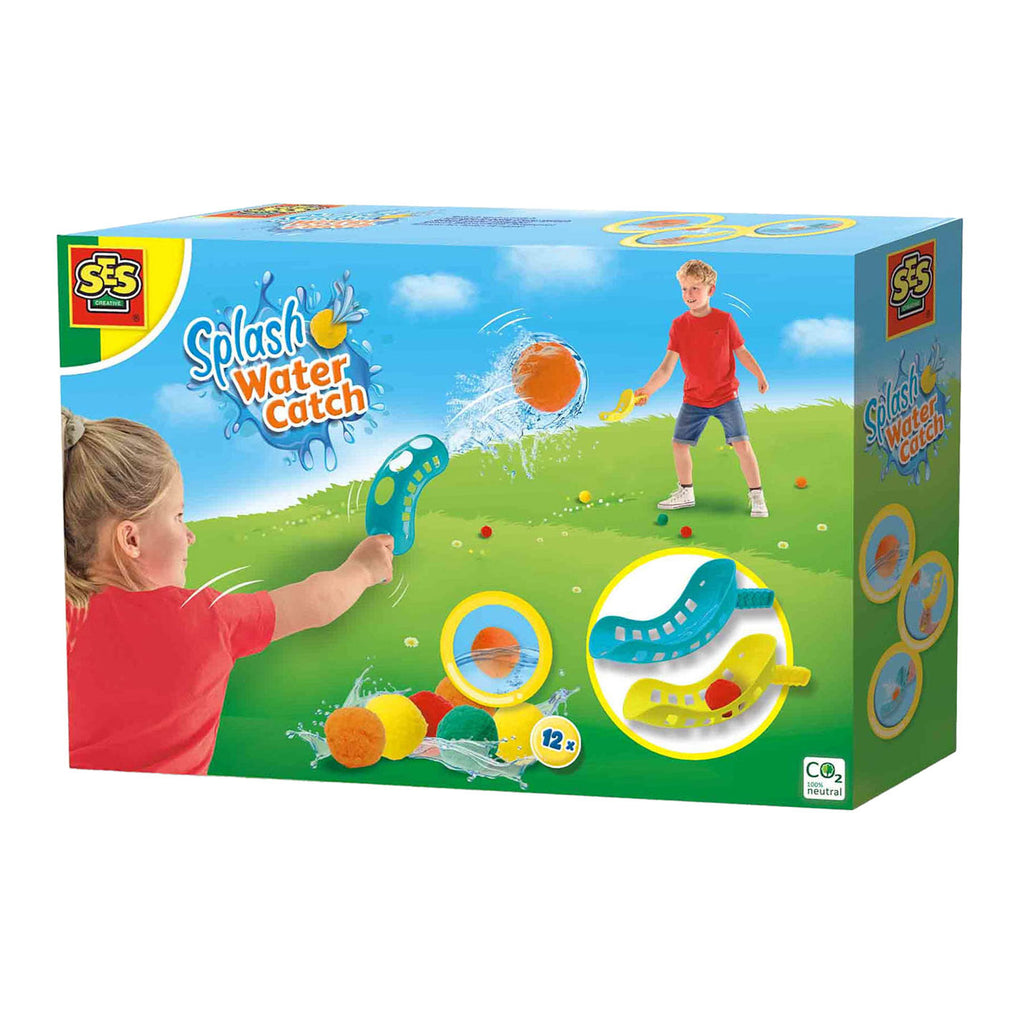 Het wordt één groot watergevecht met deze Splash watervangballenset! De Splash waterballen van SES Creative zijn ideaal op een zonnige dag. De Splash waterballen zijn zowel nat als droog te gebruiken en het perfecte, duurzame alternatief voor waterballonnen. Werp de ballen met de tool naar elkaar en probeer de ander te raken en nat te gooien! Of probeer juist samen te werken en zo vaak mogelijk over te gooien. Met de herbruikbare 12 Splashballen wordt het gegarandeerd een hilarisch waterspel! Kenmerken • Het duurzame alternatief voor waterballonnen • Steeds opnieuw te gebruiken • Droog en nat te gebruiken • Splash ballen absorberen veel water • Ideaal voor een waterballengevecht • makkelijk af te spoelen met water • Vrolijke kleuren Inhoud: 2 Werp- en vangtools, 12 Splash waterballen. Geschikt vanaf 3 jaar.