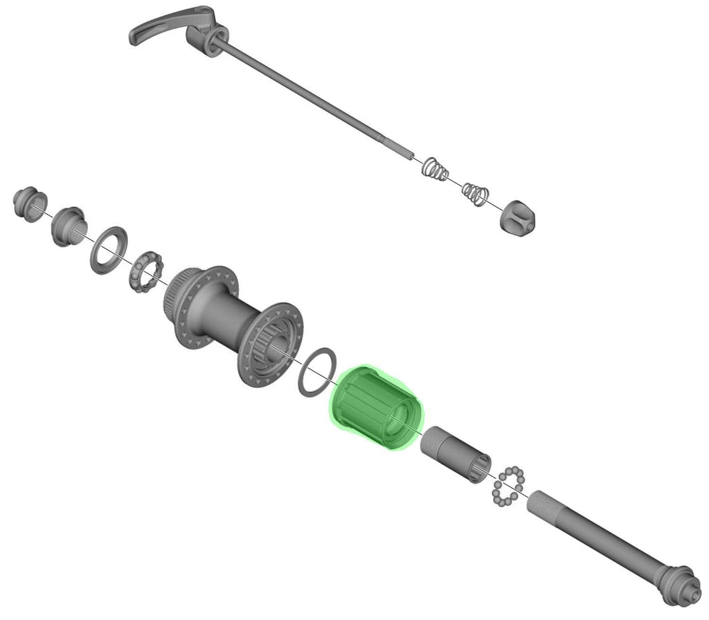 De losse opschroefbare cassettebody van Shimano XT is geschikt voor FH-M770/775/785 en is geschikt voor 8/9/10V met een groot gat.