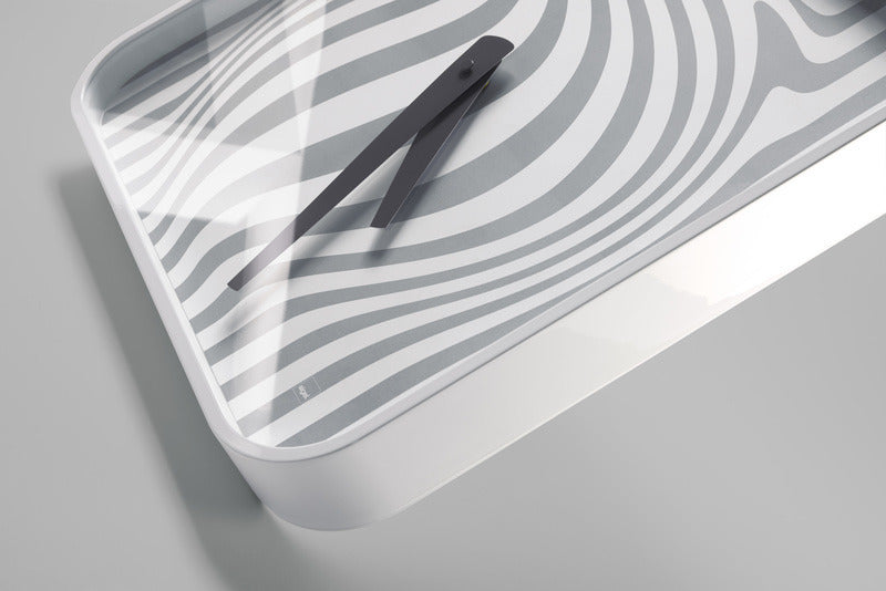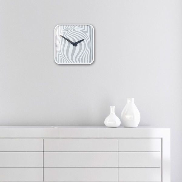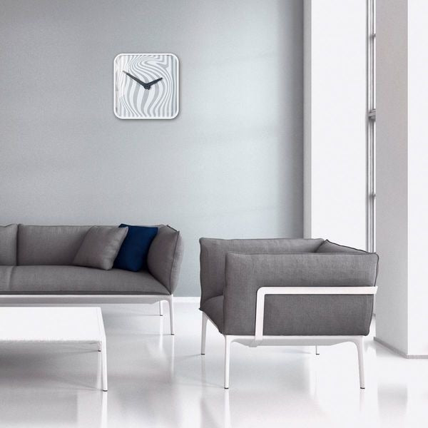Kwalitatief hoogwaardige wandklok in modern app-formaat. Hoogwaardige voorkant van mineraalglas in combinatie met een ABS-kunststofkast in hoogglans. Opvallende wijzerplaat met bijzonder, visueel effect in wit en grijs. Brede, kegelvormig toelopende wijzers in donkergrijs. Geruisloos uurwerk en geluidloze wijzers. Afmeting 350 x 350 x 45 mm. Kleur wit. Loopt op 1 x 1,5V AA-batterij (niet meegeleverd). Garantie; 5 jaar-www.sigel.de/garantie