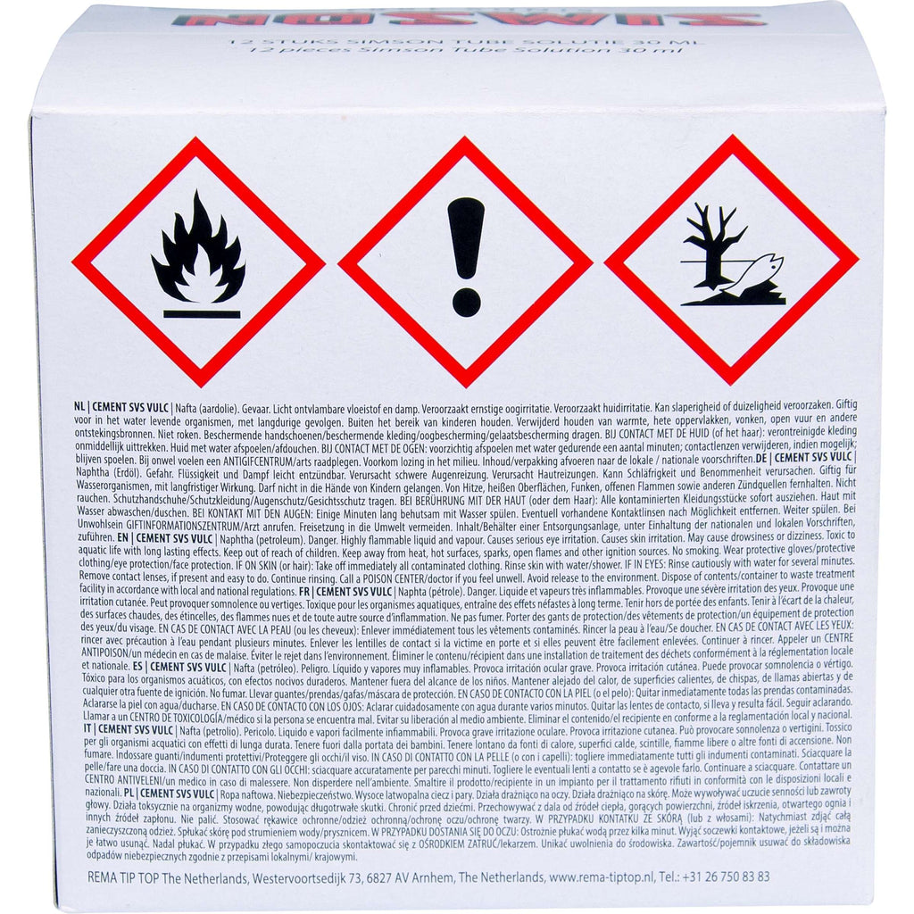 De enige echte Simson Oplossing in een knijptube van 30 ml. Onmisbaar tijdens het plakken van een lekke fietsband. De oplossing is geschikt voor het koud vulkaniseren van bandenpleisters. Breng de oplossing aan op de band en door zijn unieke sneldrogende formule kan de band al na 90 seconden worden geplakt. Te gebruiken in combinatie met alle soorten Simson bandenpleisters.