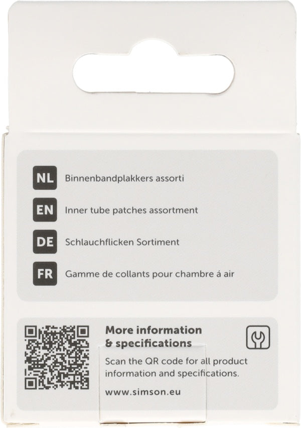 Altijd de juiste pleister voor elk lek. Dit complete assortiment bevat pleisters in diverse maten (rond en ovaal) plus een stukje schuurpapier. Hiermee ben je voorbereid op elk type lek, van een klein spijkertje tot een flinke scheur. Aanvullende informatie Maten: 22, 25, 33 mm & Ovaal. Inhoud: 9 pleisters + schuurpapier. Compleet pakket. 8711646205255 Altijd de juiste pleister voor elk lek. Dit complete assortiment bevat pleisters in diverse maten (rond en ovaal) plus een stukje schuurpapier. Hiermee ben je voorbereid op elk type lek, van een klein spijkertje tot een flinke scheur. Simson Binnenbandpleisters Assortiment. Met deze vulkanisatie pleisters is een lekke binnenband zo geplakt. Geschikt voor alle binnenbanden. Ook geschikt ter aanvulling van de gebruikte plakkers uit de Simson Reparatiedoos. De inhoud bestaat uit 9 stuks binnenbandpleisters: 2 x 22mm, 3 x 25mm, 2 x 33mm, 2 x ovaal. Te gebruiken in combinatie met de Simson Solutie.