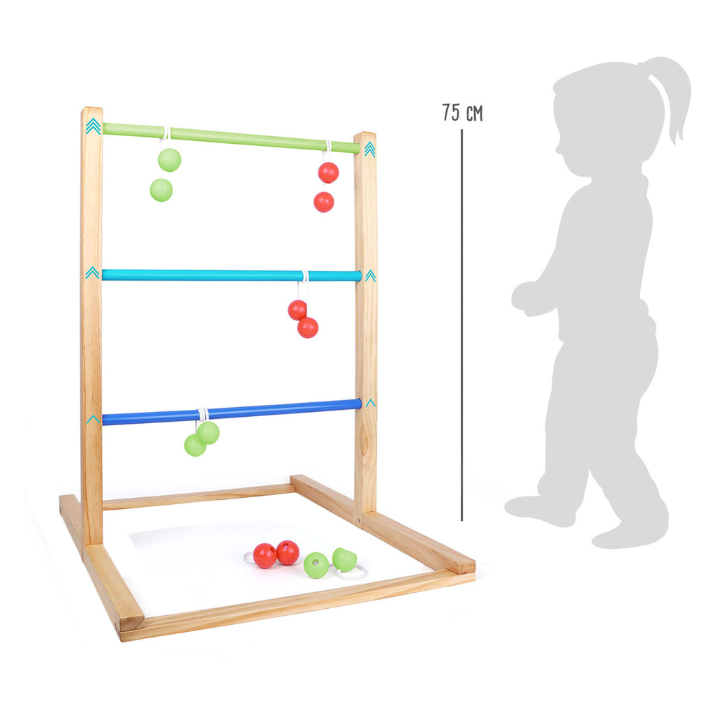 Veel plezier voor elke leeftijd! Dit werpspel van FSC® 100% gecertificeerd hout is het perfecte spel voor in de tuin of op het gazon. Spelers, zowel jong als oud, zullen zeker waar voor hun geld krijgen met Ladder Golf. Wie kunnen de houten ballen zo op de palen gooien dat ze blijven hangen? De werpafstanden kunnen veranderen worden en de cijfers zijn vervangen door maten zodat zelfs jonge kinderen, die nog geen cijfers kunnen lezen, kunnen spelen. Hiermee kan elke leeftijdsgroep zich vermaken. Dit is een compact buitenspel dat in elke tuin thuishoort! Geschikt voor kinderen vanaf 3 jaar.