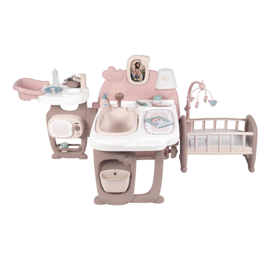 Poppenverzorgingscentrum met keuken, badkamer en slaapkamer ineen, met 23 accessoires. Het verzorgingscentrum is ook op te klappen zodat het minder ruimte in beslag neemt. Opgeklapt is de afmeting 71 bij 87,5 bij 40,5 centimeter. Volledig uitgeklapt is dit 149 bij 71 bij 71 centimeter. Geschikt voor kinderen vanaf 3 jaar oud.