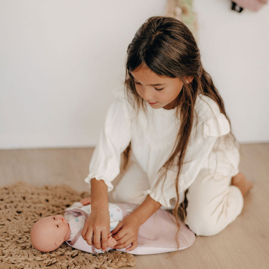 Poppenslaapzak voor een pop van ongeveer 42 cm.