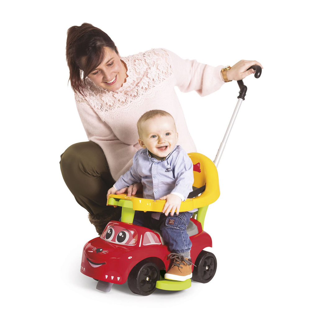 Toet-toet! Deze rode wandel- en loopwagen van Smoby groeit met je mee vanaf 6 maanden. De wandelwagen is gemakkelijk te combineren en te besturen. De auto heeft een comfortabel zitje met een veiligheidsgordel en hoge rugsteun. Plaats het variabele blad over het stuur, zodat het in de eerste maanden niet gebruikt hoeft te worden. Vanaf 10 maanden tover je het elektronische stuur met geluidjes onder het blad vandaan en verwijder je de voetsteunen. Door de duwstang aan de achterzijde los te koppelen kun je nu zelf de auto duwen. Vanaf 12 maanden kun je zelf de auto besturen. De auto is gemaakt van stevig kunststof en heeft vier geruisloze wielen. Onder het zitje zit een handige opbergruimte verborgen, zo neem je je speelgoed overal mee naar toe. Inclusief batterijen.
