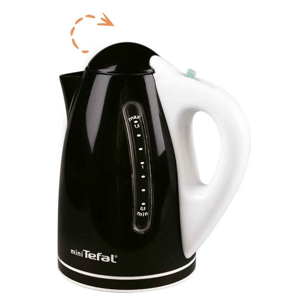 Mechanische speelgoed waterkoker van Smoby en Tefal. Vul de ketel met water en je hoort een virtueel waterkookgeluid. Afmetingen: 8 x 8 x 13,8 centimeter. Kleur: zwart met wit. Geschikt voor kinderen vanaf 3 jaar.