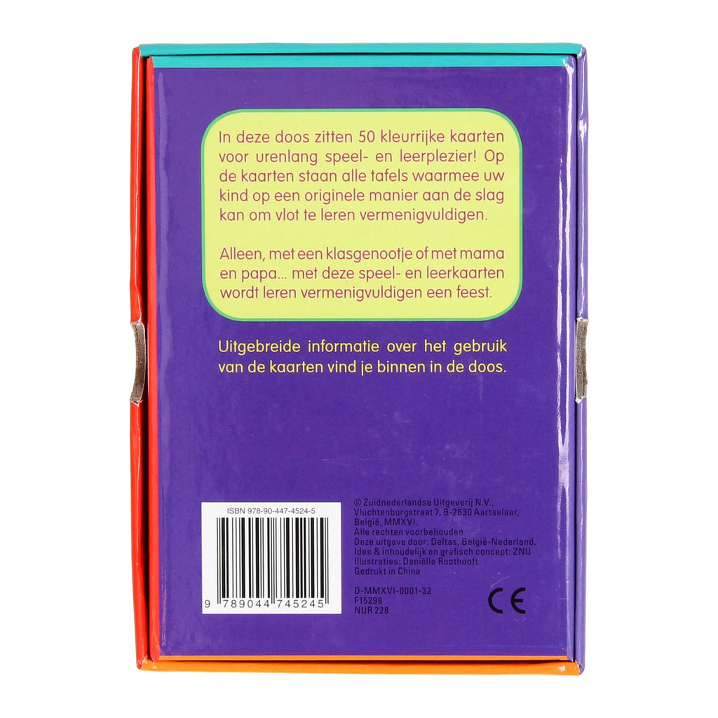 In deze doos zitten 50 kleurrijke kaarten voor urenlang speel en leerplezier. Op de kaarten staan alle tafels waarmee uw soort op een originele manier aan de slag kan om vlot te leren vermenigvuldigen.