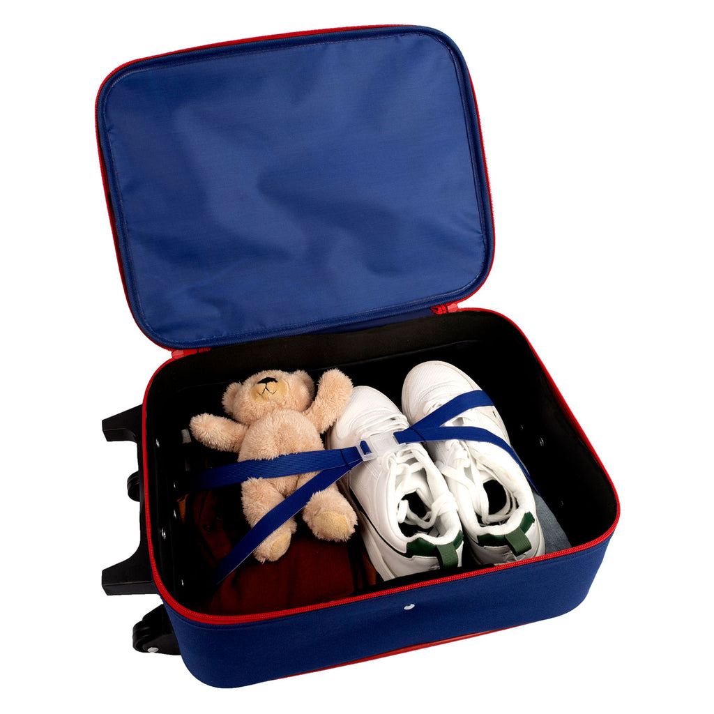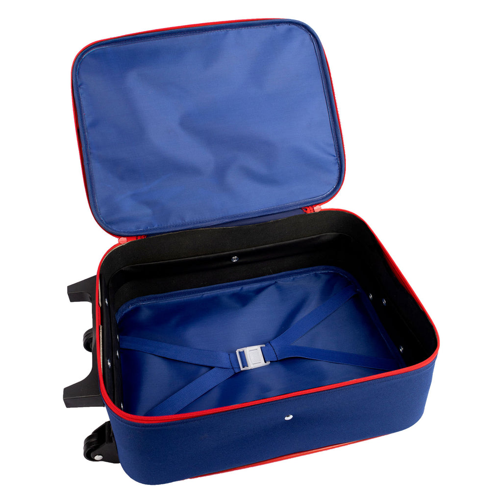 Spider-Man trolley met handvat, wieltjes en duwstang. De trolley is gemaakt van blauw/rood polyester en heeft een grote afbeelding van Spider-Man als uitgangspunt. Afmetingen: 52 x 30,5 x 17 centimeter. Geschikt voor kinderen van 3 tot 6 jaar.
