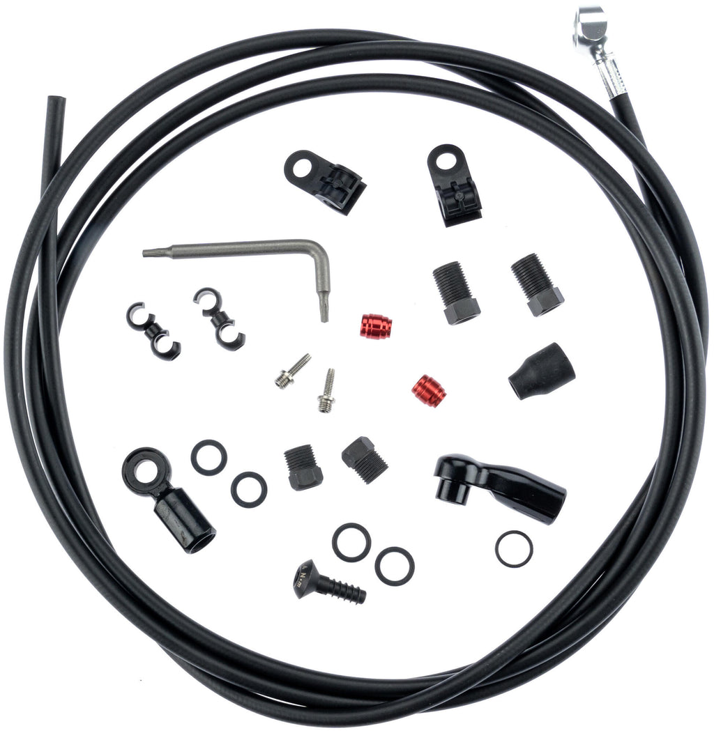 Voor hydraulische remmen, 2000 mm kabel, met aansluitingen, zwart passend voor:SRAM hydraulische rem Red 22 / Force 22 / Force 1/ Rival 22 / Apex 1 / S-700 remgreep Hoofdkleur zwart Leiding 2000 mm Type/soort Artikel Uitvoering Bremse Variant rem hydraulisch
