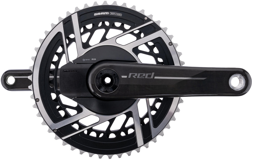 2-speed, DUB, zonder bracketset 12-speed compatibel, holle cranks van carbon, kettingblad van aluminium ter directe montage, kettinglijn 45 mm, Bluetooth en ANT+ zender-techniek, LED controlelamp voor bedrijfsklaar, terugzetten en lage batterijstand, naukeurigheid: +/- 1,5 %, tweezijdige meting, batterijwissel zonder gereedschap (CR2032) Aantal kettingbladen 2 Cranklengte 165.00 mm Hoofdkleur zwart Kettingblad groot 50 inch Kettingblad klein 37 inch Kettinglijn 45.0 mm Secundaire kleur grijs Systeemcompatibiliteit 12-speed Trapas DUB Type/soort Artikel Variatie crankstel