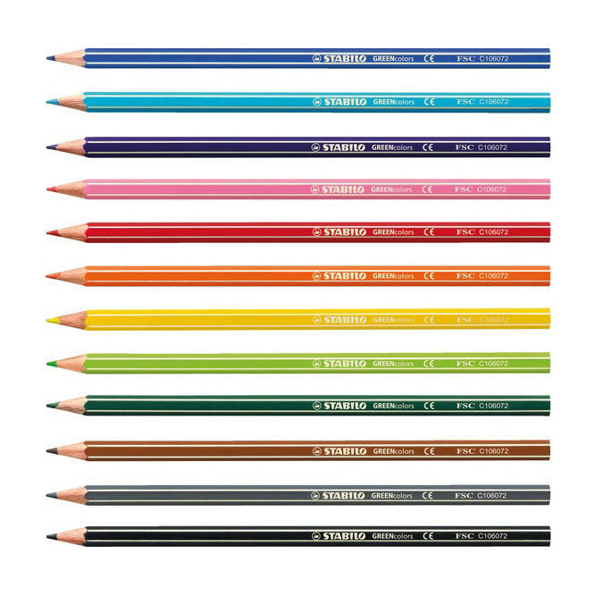 Met deze kleurpotlodenset met 12 verschillende kleuren maak jij de mooiste tekeningen. De kleuren zijn helder en opgevangen dankzij de superieure kwaliteit van STABILO. De potloden gaan lang mee, zodat je er lang plezier van kunt hebben. De potloden uit de GREEN-lijn van STABILO zijn FSC goedgekeurd, wat betekent dat het hout volledig is geproduceerd uit goed beheerde bossen om het milieu te beschermen. Kleur onbezorgd en zonder schuldgevoel naar hartenlust met deze kleurpotloden.