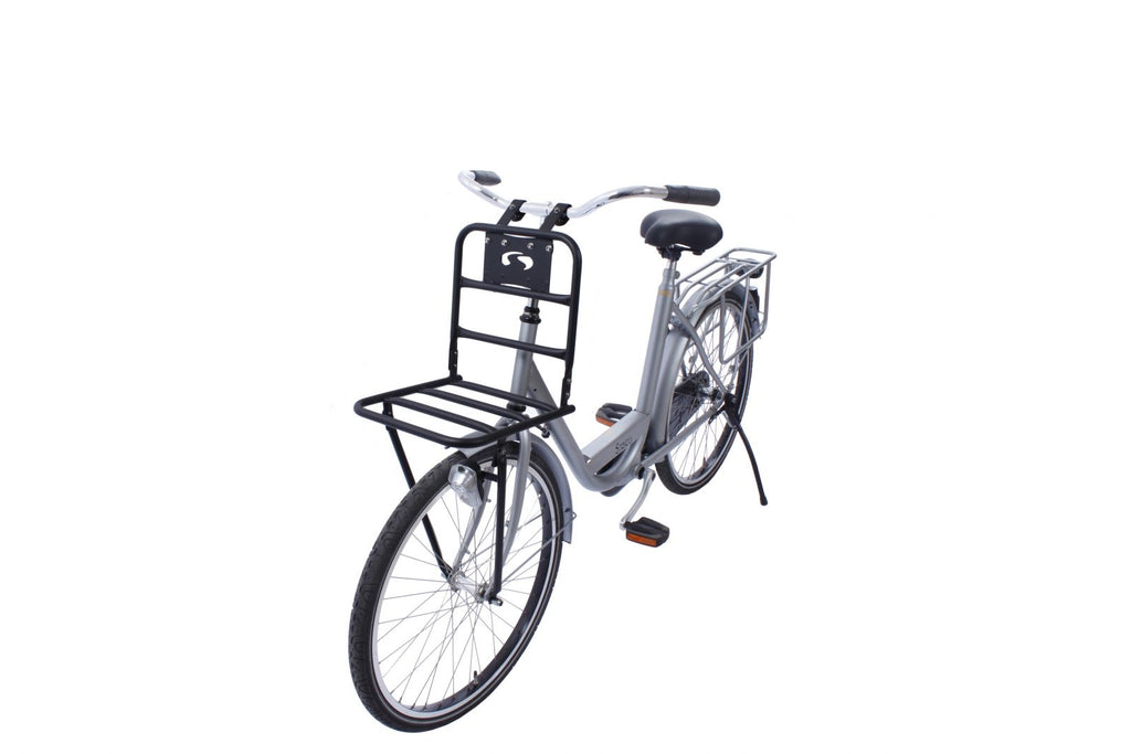 Met dit stevige en functionele transportrek kun je jouw fiets een upgrade geven. Deze voordrager is geschikt voor de meeste stadsfietsen zonder verende voorvork. Het is ideaal voor het vervoeren van een krat, mand, boodschappen of zelfs je voetbaltas. De drager heeft een maximaal draagvermogen van 15 kg en verleden op 26 en 28 inch fietsen. De voordrager is eenvoudig te combineren en wordt geleverd inclusief 2 haken en een RVS bevestigingsset. Productspecificaties - Kleur: Mat zwart - Afmetingen draagvlak: 30x30 cm - Materiaal: 16 mm buis - Stuurbevestiging: Traploos verstelbare stuurhaken - Lamphaak: Ja - Goedgekeurd volgens ISO 11243:2016-12 (15 kg) - Universele stuur- en asbevestiging - Sterke poederepoxyfinish