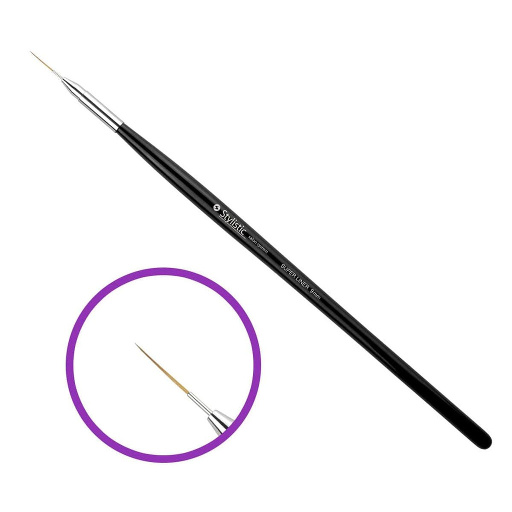 is een super dun en nauwkeurig nagelpenseel voor nailart en/of applicaties dicht bij de nagelriemen. Het penseel heeft lange borstelharen van 9mm die super dun en spits zijn. Met je perfecte lange, ultradunne lijnen zetten en precies werken. Het Super Liner penseel heeft hoogwaardige synthetische borstelharen die met een metalen band vast zit aan het houten handvat. Met deze penseel kun je comfortabel en gemakkelijk werken. De borstelharen hebben een lengte van 9,5 mm. Onderhoud: veeg na gebruik eventuele productresten af met een droog, stofvrij wattenstaafje. Druppel een beetje base- of topcoat op een wattenschijfje en veeg de borstelharen hierin om alle resten te verwijderen. Maak de haren droog met een schoon, stofvrij wattenschijfje. Schuif de kunststof hoes om de haren na de reiniging. Gebruik nooit schoonmaakmiddel of aceton omdat dit de borstelharen kan beschadigen. Plus- en minpunten Dun penseel voor builder gel en gellak decoraties Nauwkeurig werken Ligt prettig in de hand Ideaal voor nailart