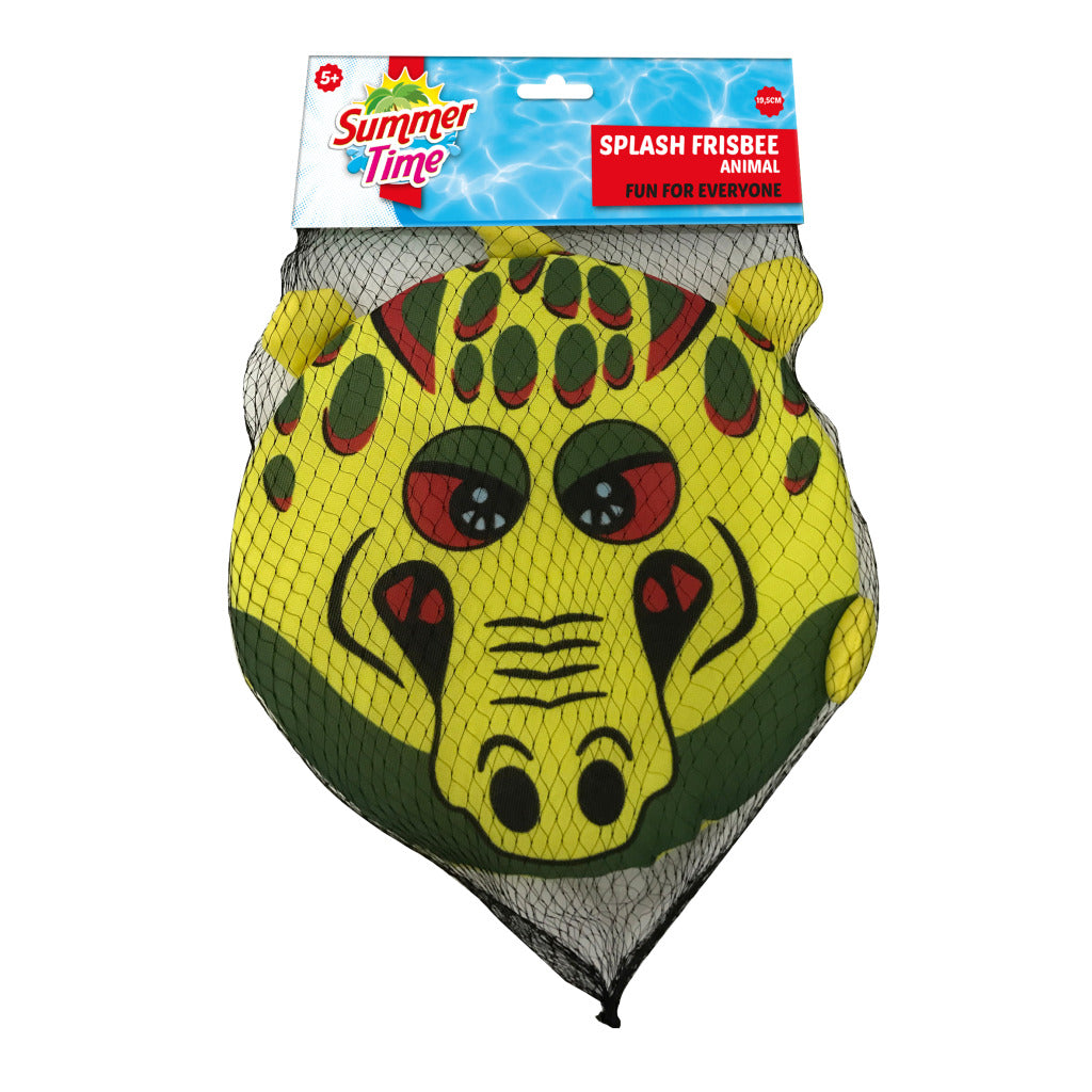 Summertime splash frisbee, in de vorm van een dier. Laat de frisbee zich volzuigen, gooi 'm en... word kletsnat! Leuk voor onderdeel van park. Wordt 4 assorti geleverd in netto met Summertime kopkaart. Geschikt voor kinderen vanaf 5 jaar.