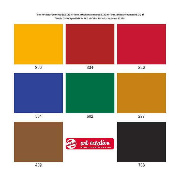 Talens Art Creation aquarelverf is een transparante verf die gelijkwaardig met water wordt. Hoe meer water je gebruikt, hoe lichter de kleur van de verf wordt. Hierdoor kun je in veel verschillende transparante lagen werken om zo prachtige kleureffecten te creëren. Aquarelverf droogt niet watervast op, dus je kunt de verf waar nodig nog bewerken met water. Gebruik deze kleuren op droog papier om strakke details te creëren en op nat papier om de zachte kleuren te laten vloeien en vloeibare kleurovergangen te creëren.
