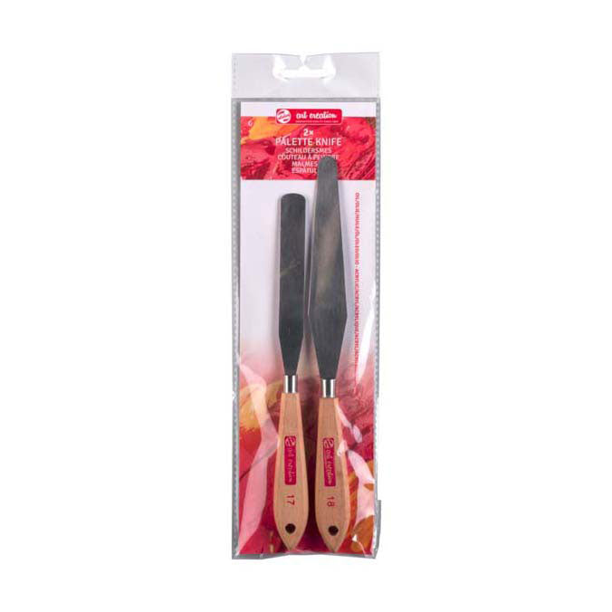 Een set met 2 metalen paletmessen. Dankzij de lange, rechte vorm is deze messenger ideaal voor het voorbereiden en mengen van kleuren en om het oppervlak van je palet schoon te maken. Ook geschikt voor het creëren van expressief en gestructureerd werk met olie- en acrylverf.