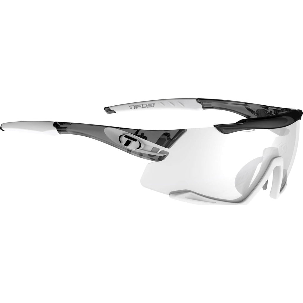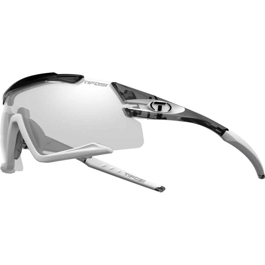 Tifosi bril Aethon, kleur: cristal smoke/wit, antisliprubber op de verstelbare neusvleugel en pootjes. Voorzien van Light Night Fototec glas: ideaal tijdens zonnige omstandigheden en zonder kleurvervorming. Dankzij de Fototec techniek kleuren de glazen mee met de hoeveelheid zonlicht. De bril kan zowel metalen zonder wenkbrauwbeugel (clip aan bovenzijde van de bril) worden gebruikt. Gewicht: 35 gram.
