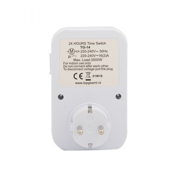 Deze timer is instelbaar voor 24 uur en is gemakkelijk te gebruiken door middel van schuifjes. Elke schuif staat voor 15 minuten. De timer heeft een maximale capaciteit van 3500 watt. Verpakt in blister.