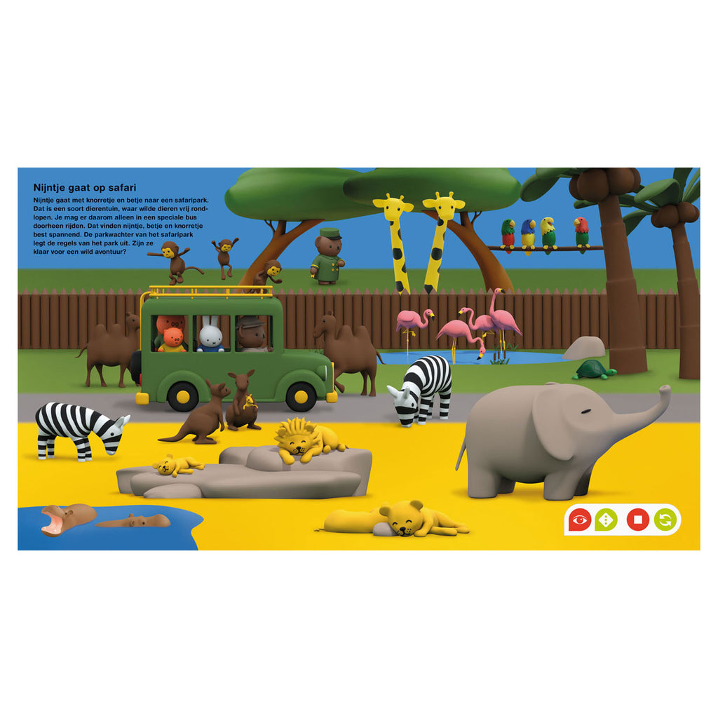 Beleef allerlei avonturen, er gebeurt van alles! Ontmoet de familie plis, knorretje, betje, snuffie en alle anderen. Met de tiptoi® stift komen de avonturen van nijntje tot leven. In het safaripark, op het strand, in de speeltuin is veel te ontdekken. Kun jij de dieren in het safaripark vinden? Ken jij alle speeltoestellen in de speeltuin? Wat is er allemaal op het strand te beleven? Ga samen met nijntje en haar vriendjes op avontuur! Door middel van eenvoudig te begrijpen zinnen leren kinderen vanaf 3 jaar in een handomdraai nieuwe woorden uit hun leefomgeving. Spelletjes en liedjes diepgaande de geleerde woordenschat. tiptoi® stift is niet inbegrepen en los verkrijgbaar.