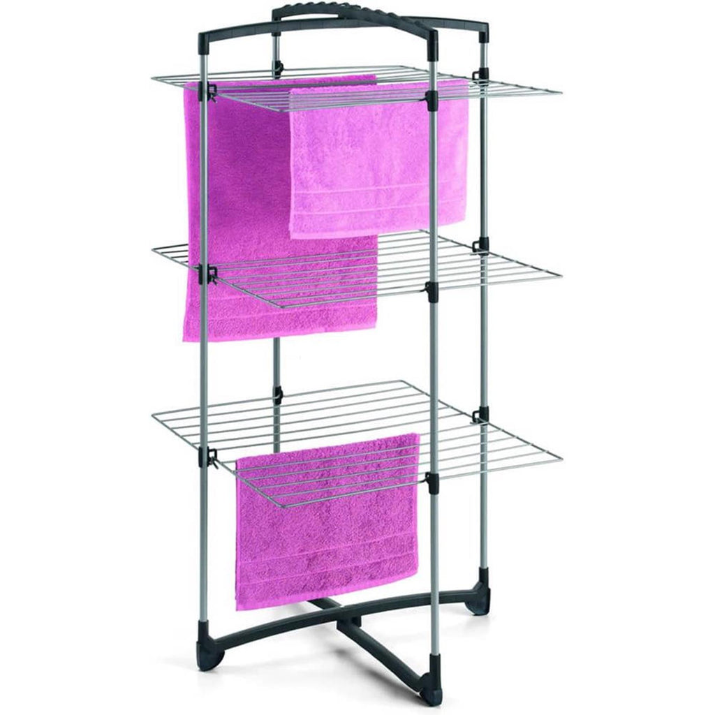 Je kan de droogtoren half openen en tegen een muur plaatsen. Je kunt hem ook helemaal openen om bijvoorbeeld lange badhanddoeken te drogen. De 2 bovenarmen zijn geschikt voor het ophangen van kleding. Het droogrek is stabiel dankzij de antislipvoeten.