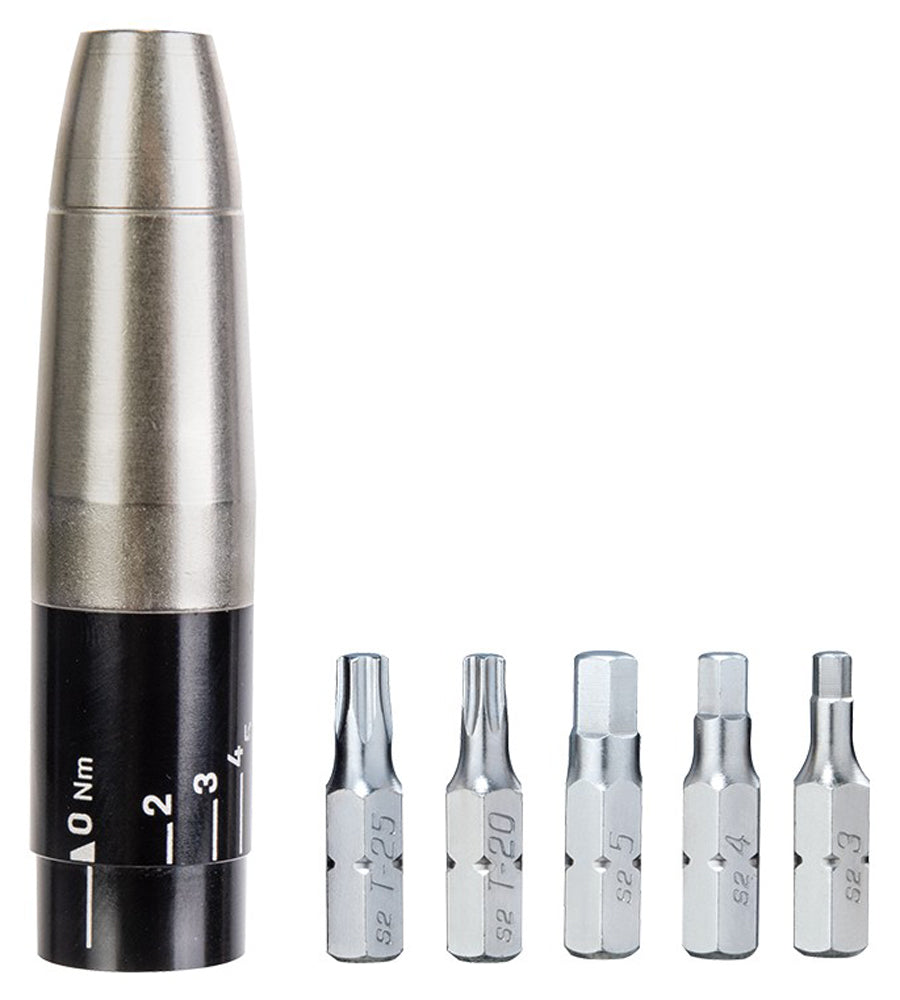 Topeak momentsleutel Nano TorqBox X is een handig gereedschap voor het vastdraaien van schroeven en bouten. Met deze momentsleutel kunt u een nauwkeurig draaimoment instellen tussen 2 en 6 Nm, wat ideaal is voor fietsonderhoud en reparaties. De momentsleutel werkt met elke inbussleutel van 5mm en wordt geleverd met 3 / 4 / 5 inbusbits en T20 / T25 Torx bits. Met een gewicht van slechts 128 gram is deze momentsleutel ook zeer draagbaar en gemakkelijk mee te nemen tijdens uw fietstochten. Met de Topeak momentsleutel Nano TorqBox X kunt u ervoor zorgen dat uw fietscomponenten veilig en correct worden vastgedraaid.