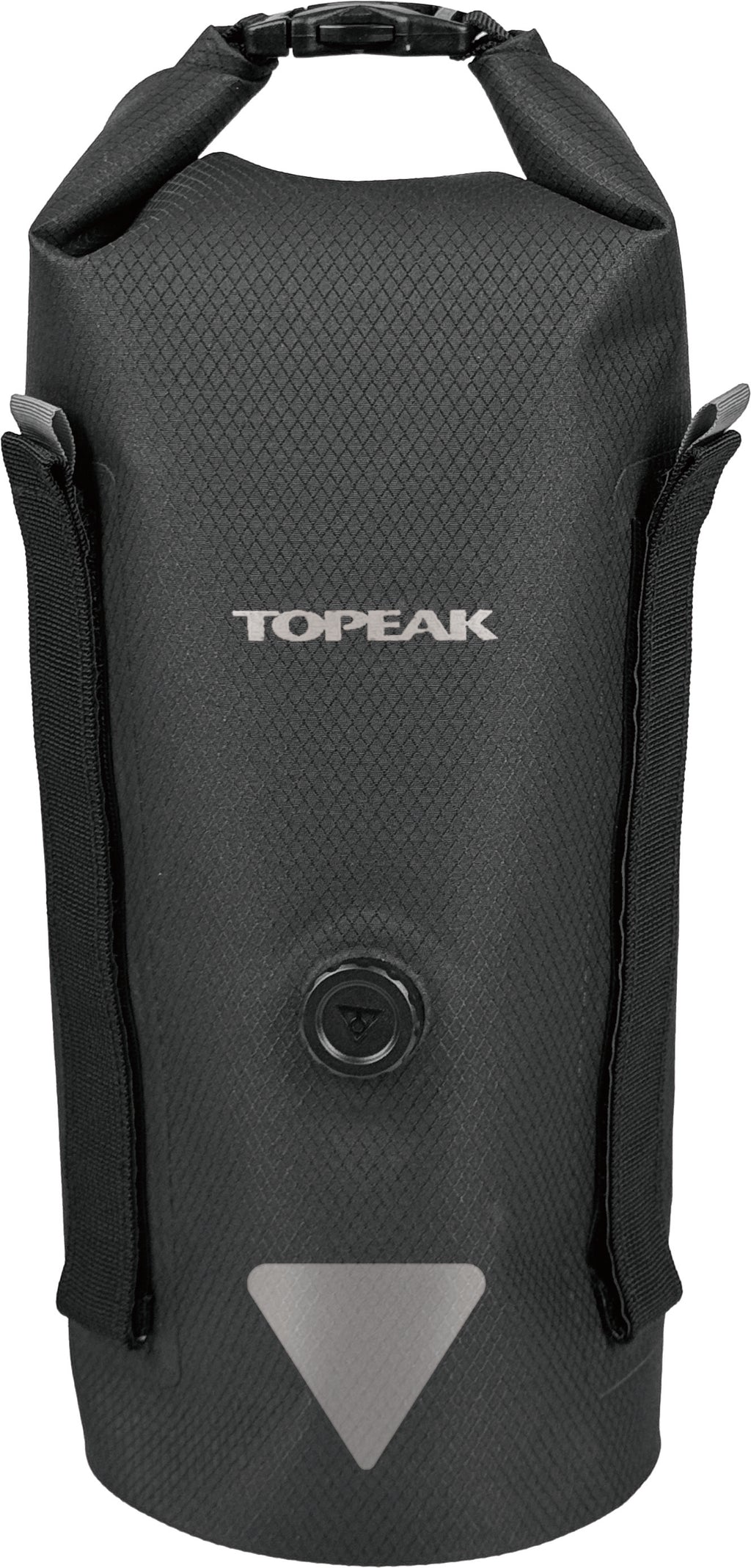 Topeak vorktas rolltop Drybag 4L zwart voor bevestiging aan de voorvork. Maximale belasting 3 kg. voorzien van een ontluchtingsventiel om de tas compact te houden. TC3705B