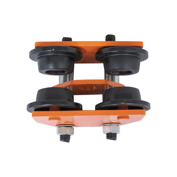 Loopkat voor kettingtakel 2 ton Loopkat op rollen waarbij de breedte verstelbaar is door middel van stelbussen. Geschikt voor maximaal 2 Ton. Installatiebereik Min. 50 mm., Max. 130 mm.