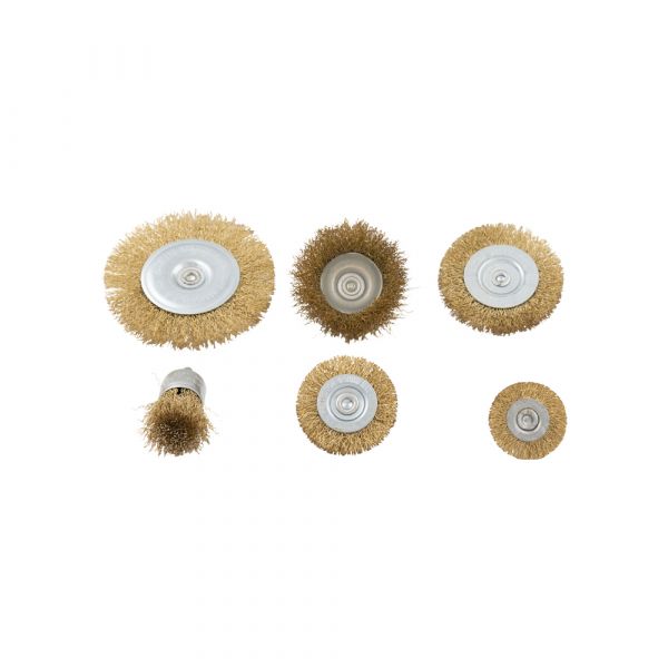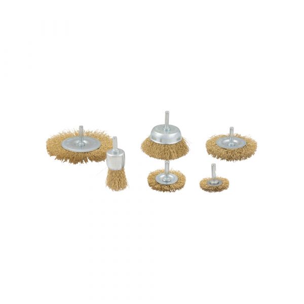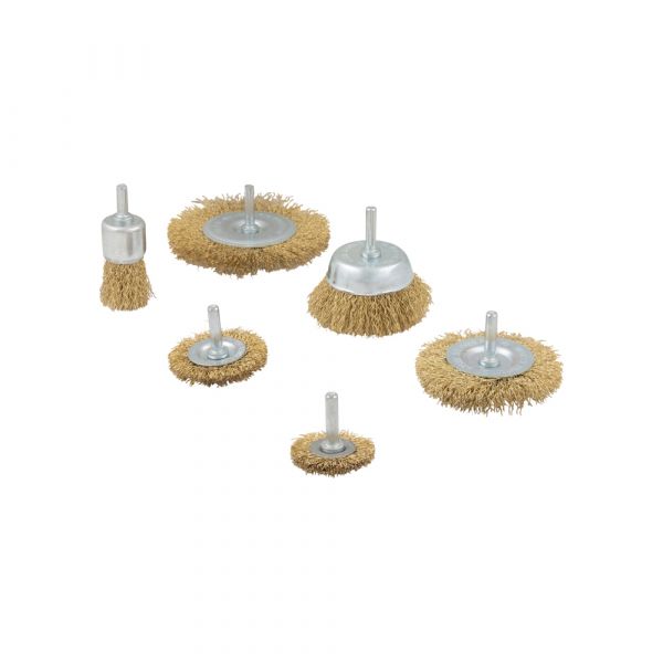 Staalborstelset 6 delig Set bestaande uit 6 verschillende staalborstels met stift. Verpakt in blister.