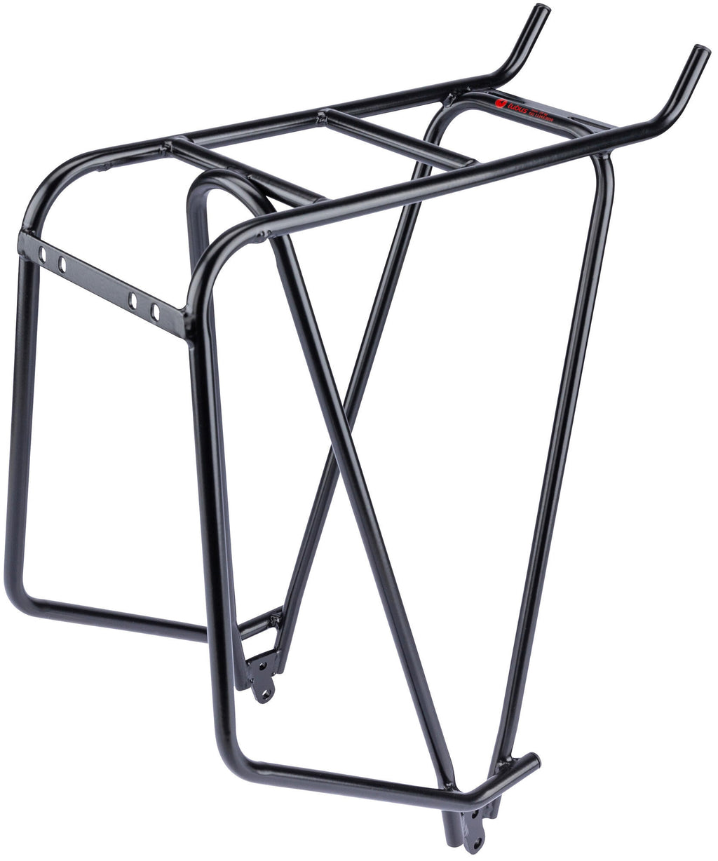 25CrMo4, V-poot, achtervorkbevestiging, zwart Bevestigingsmogelijkheid voor bijna alle pak-af-tassen, met steunvlakken voor pak-af-tassen, op bovenplaat is de bagage veilig te bevestigen, "horentjes" voorkomen dat de bagage tegen de rem gaat voorglijden, max. draaglast 26 kg (getest met 40 kg), gewicht incl. aanbouwdelen ca. 740 g Universeel & extreem belastbaarDe TUBUS bagagedrager "Cargo" is gemaakt van zeer sterk CrMo-staal en dat heeft een reden: dankzij het hoogwaardige materiaal kan de TUBUS "Cargo" lasten tot 40 kg dragen en weegt hij slechts 741 g inclusief alle bevestigingen. Ideaal voor langere tochten, grotere boodschappen en voor koeriers. Bijna alle fietstassen kunnen aan de TUBUS "Cargo" worden bevestigd. Kleine "hoorntjes" voorkomen dat de fietstassen naar voren schuiven tegen de remarmen. Bagage kan natuurlijk ook betrouwbaar op de bagagedrager worden vervoerd. De TUBUS "Cargo" kan met verstelbare stelstangen aan bijna elke 26" Fietsen worden aangepast. Bevestiging liggende achtervork Eigenschappen tassen-steun Geschikte wielmaten 28 " Hoofdkleur zwart Max. draaglast 40 kg Montage achterop Type/soort Artikel