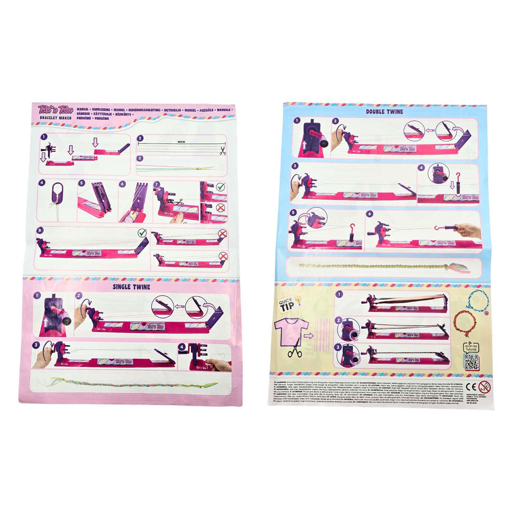 Twist-n-twijn armbandmaker. De set bevat verschillende garen, bedeltjes en kraaltjes. Geschikt voor kinderen vanaf 6 jaar. Met de set kan je ca. 30 armbandjes maken.