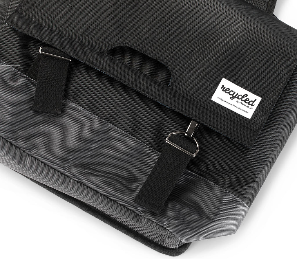 De Urban Proof dubbele fietstas 55L is een duurzame tas gemaakt van gerecycled PET-materiaal (RPET). De tas heeft twee ruime opbergvakken met een totale inhoud van 55 liter. Hij is gemaakt van waterafstotend RPET en heeft een waterdichte voering aan de binnenkant voor extra bescherming. Met de eerder bedoelde riempjes is de dubbele fiets eenvoudig aan jouw bagagedrager te bevestigen. Specificaties: - Gerecycled PET materiaal - Afmetingen: 42 x 19 x 34 cm - Inhoud: 55 liter - Kleur: zwart