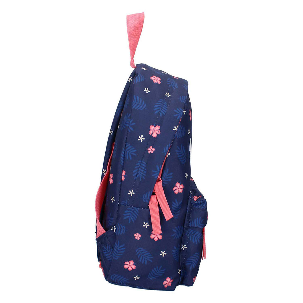 Neem deze leuke Stitch rugzak uit de 'Made For Fun' collectie mee naar school, de opvang of een dagje weg. Op de blauwe rugzak staat het vrolijke gezicht van Stitch groot afgebeeld. De tas is verder afgewerkt met een all-over bloemenprint en roze details. Het hoofdvak heeft een dubbele rits die zorgt ervoor dat kindjes de tas makkelijk open kunnen maken. Het voorvakje is perfect voor kleinere spullen. Bovendien heeft dit item verstelbare schouderbanden zodat de rugzak voor iedereen op maat te maken is. Draag de tas ook gemakkelijk aan de handige lus. De rugzak is voorzien van een gewatteerde achterkant, wat zorgt voor extra draagcomfort.