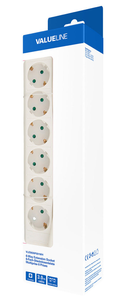 Valueline vles630f001wh stekkerdoos 6-wegs 3,00m wit