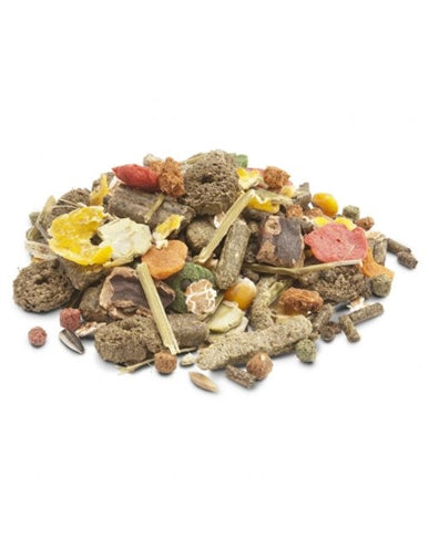 Samenstelling: plantaardige bijproducten, granen, groenten (5%), vruchten, zaden, mineralen, suiker, plantaardige eiwitextracten