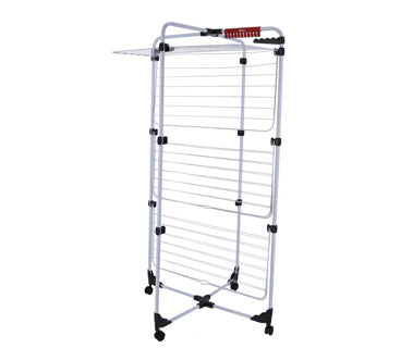 Dit Vileda Droogrek Mixer 3 zorgt voor veel droogruimte voor de schone was. Het droogrek heeft 3 etages met in totaal 30 meter aan droogruimte. Klap het droogrek geheel of half open dankzij het speciale scharnier. De Mixer 3 heeft wieltjes en handige accessoires zoals een sokkenhouder en 2 haken voor kleerhangers. Afmeting: 71 x 5 x 132 cm.